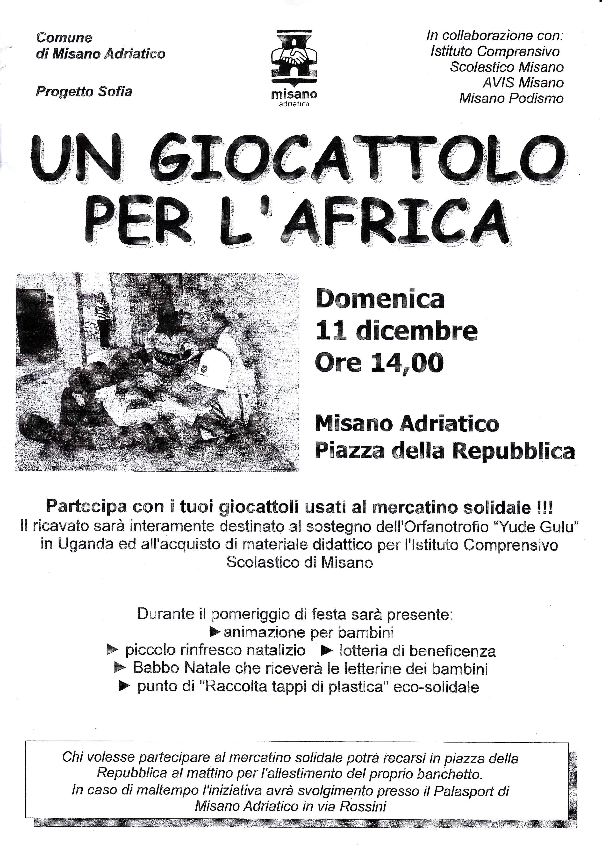 Mercatino giocattoli usati. Il ricavato sarà interamente destinato al sostegno dell’Orfanotrofio “Yude Gulu” in Uganda ed all’acquisto di materiale didattico per l’Istituto Comprensivo Scolastico di Misano.