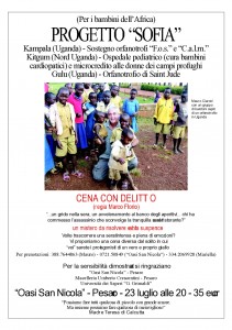 Aiutiamo I bambini dell’Africa. L’appuntamento è all’Oasi San Nicola di Pesaro ore 20.00. Per finanziare questi progetti: Kampala (Uganda) – Sostegno orfanotrofi “F.o.s.” e “C.a.l.m.”, Kitgum (Nord Uganda) – Ospedale pediatrico (cura bambini cardiopatici), Microcredito alle donne dei campi profughi Gulu (Uganda), Orfanotrofio di Saint Jude