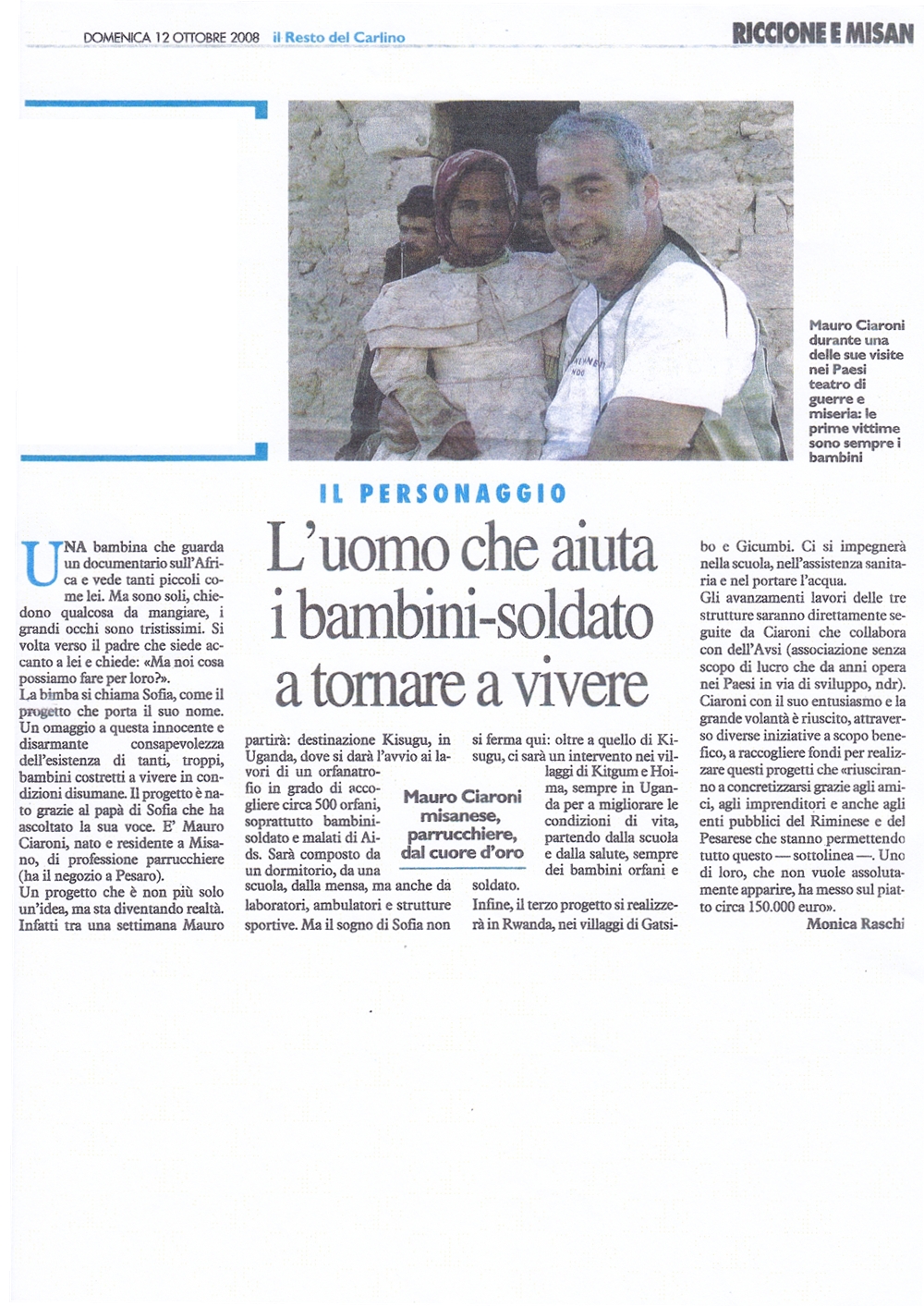 Rassegne Stampa Stampa 12 ottobre 2008 12 Ottobre 2008 admin L’uomo che aiuta I bambini-soldato Articolo apparso sul quotidiano “Il Resto del Carlino”, 12 ottobre 2008