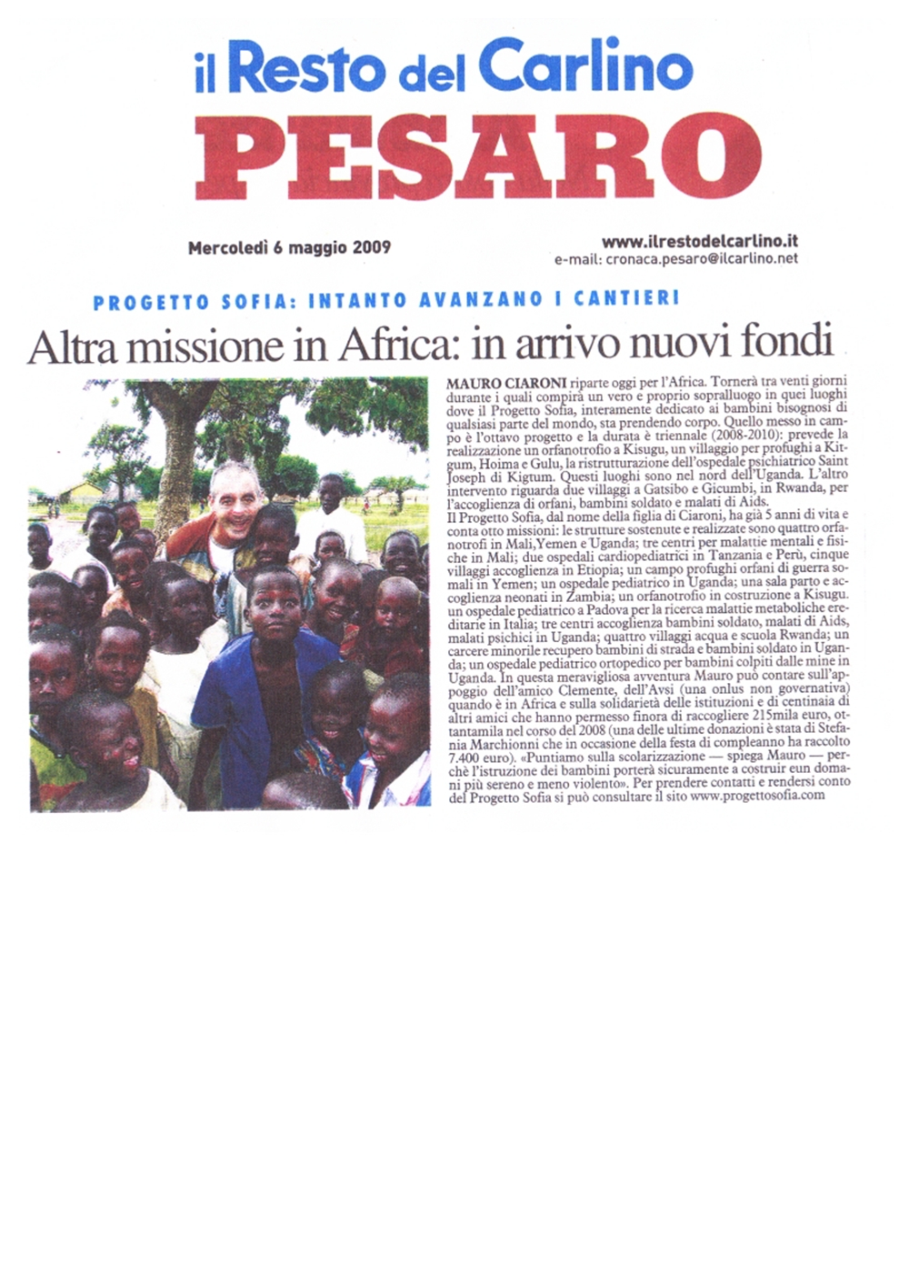 Rassegne Stampa Stampa 06 maggio 2009 6 Maggio 2009 admin Altra missione in Africa Articolo apparso sul quotidiano “Il Resto del Carlino”, 06 maggio 2009